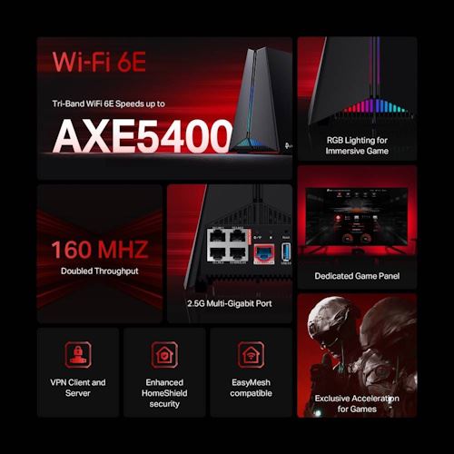 Router Gaming TP-Link Archer GXE75 AXE5400 Tri-Band WiFi 6E Mesh