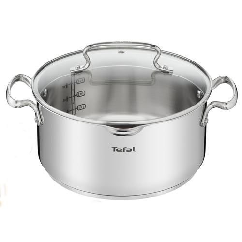 Possui também marcas de medição no interior e tampa em vidro para uma confeção controlada, pegas robustas e elegantes. Fácil limpeza.