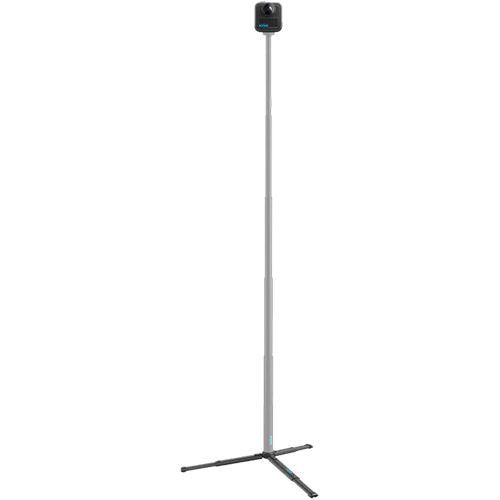 É fabricado em alumínio resistente, à prova de água e foi especialmente concebido para impedir a entrada de areia. As pernas fecham completamente, permitindo que uses o tripé como uma pequena pega. Também podes ligar um bastão extensor compatível com rosca 1/4-20 para captar imagens com o bastão invisível usando uma câmara 360°.
