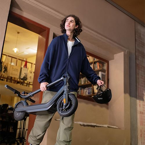Com tudo o que precisa para tornar a sua condução mais segura, o E2 Pro está equipado com uma luz dianteira e traseira e sinais de mudança de direção incorporados. Além de um sistema de travagem duplo, com um travão a tambor dianteiro e um travão elétrico traseiro.