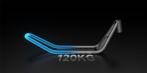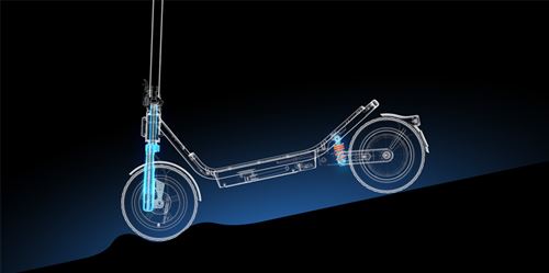 Suspensão dianteira de curso de 30 mm com mola dupla | Suspensão traseira com mola central