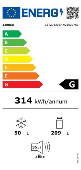 Frigorífico com Congelador Encastrável Zanussi ZBT27430SA | 157,5x54x53,7 cm | 209 L | G | Branco